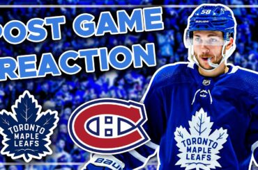 Zack Phillips réagit au match 70 de la saison régulière des Maple Leafs de Toronto contre Pierre Engvall, Bo Horvat…