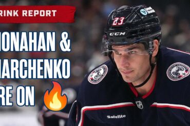 L’entraîneur-chef Dean Evason, Zach Werenski, Adam Fantilli et Jet Greaves parlent aux médias après la victoire de la route 4-1…