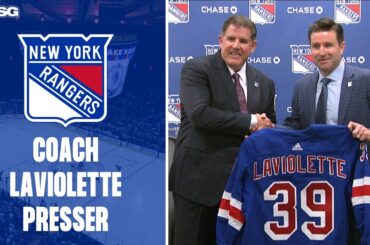 Les Rangers de New York tiennent une conférence de presse pour présenter leur nouvel entraîneur-chef, Peter Laviolette. Laviolette a brièvement…