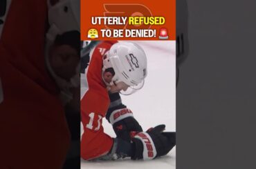 Le revers de l’attaquant des Flyers de Philadelphie Travis Konecny est refusé par le gardien des Canucks de Vancouver Thatcher…