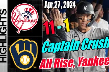 #NewYorkYankees #MilwaukeeBrewers #yankeesvsBrewers Yankees de New York contre Brewers [Highlights] 27 avril 2024 | Capitaine Juge 2-Run Home Run ! New…