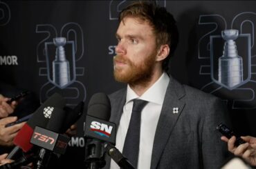 Leon parle à la suite de la défaite du match 2 des Oilers contre les Panthers vendredi à Rogers Place.
