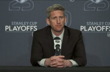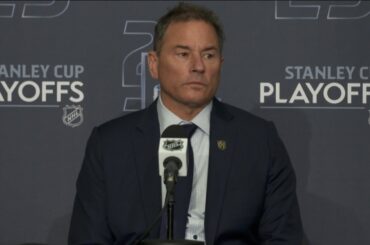 Bruce s’adresse aux médias après que les Golden Knights soient blanchis par les Oilers du match 4 lundi.