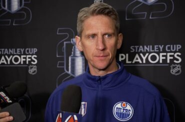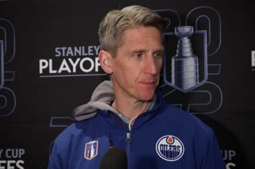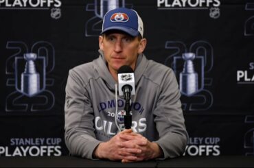 Kris s’adresse aux médias et fournit une mise à jour sur la gamme des Oilers avant le match 1 contre…