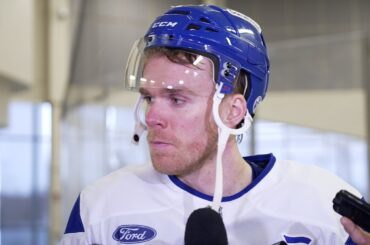 Connor parle aux médias de la Free Community Arena du centre-ville après le patin facultatif de mardi.