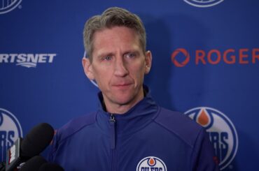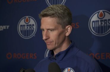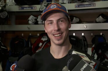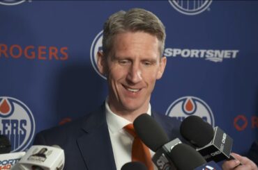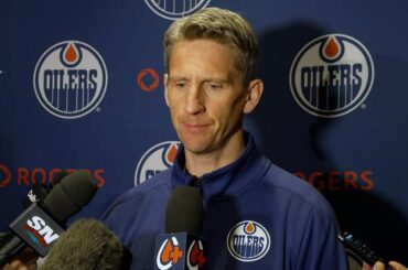 Kris parle aux médias alors que son équipe battait le Seattle Kraken 5-4 à Rogers Place samedi soir.