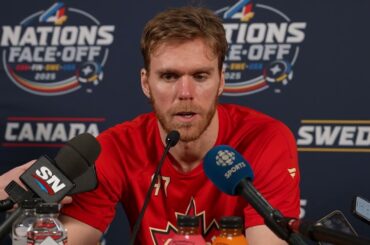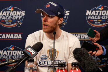 Connor parle aux médias après avoir marqué le vainqueur en prolongation pour vaincre les États-Unis et remporter les 4 Nations…