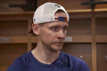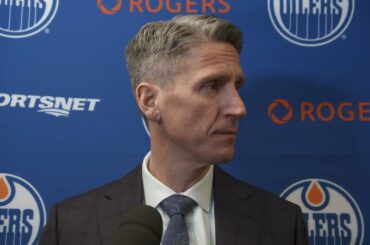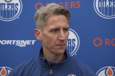 Corey parle aux médias après la défaite 7-3 d’Edmonton contre Washington dimanche après-midi.