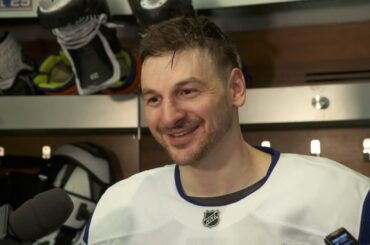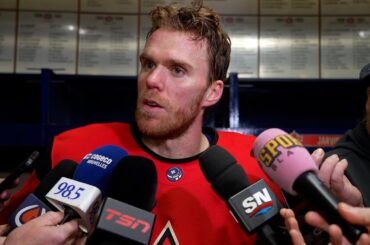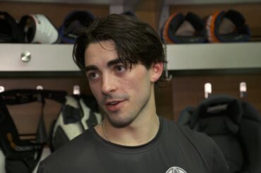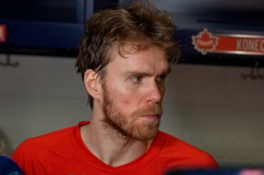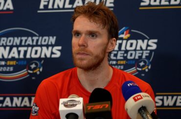 Connor parle aux médias après avoir marqué le seul but de Team Canada samedi soir dans une défaite 3-1 contre…