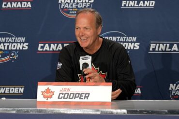 L’entraîneur-chef Jon Cooper parle aux médias de Montréal lundi à propos de Team Canada avant la confrontation des 4 nations.