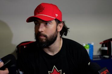 Drew parle aux médias alors que Team Canada a pratiqué à Montréal lundi avant la confrontation des 4 nations.