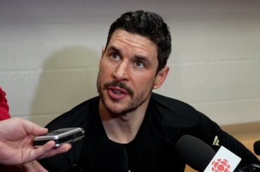 Sidney parle aux médias de la défaite 3-1 du Canada contre les États-Unis samedi soir au Bell Center à Montréal.
