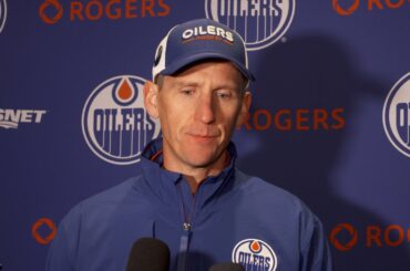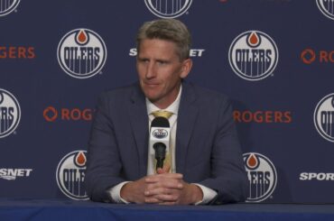 Kris s’entretient après une défaite de pré-saison 3-2 contre les Flames en prolongation dimanche à Rogers Place.