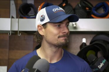 David parle à la suite d’une défaite de pré-saison 3-2 contre les Flames en prolongation dimanche à Rogers Place.