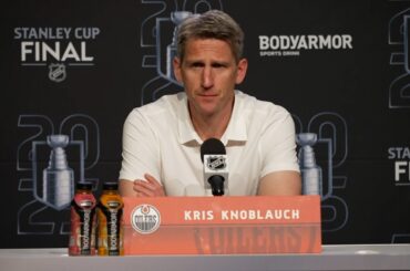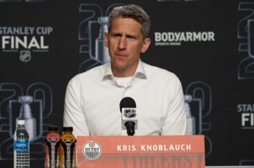 Kris s’adresse aux médias alors que les Oilers ont perdu 5-2 dans le match 5 et doivent gagner mardi en…