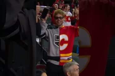 Un partisan de Calgary célèbre un but d’Andrew Mangiapane dans son chandail divisé Kings/Flames. Abonnez-vous à notre chaîne pour les…