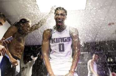 Entrez dans le vestiaire des Kings alors qu’ils célèbrent le 2e match avec le meilleur score de l’histoire de la…