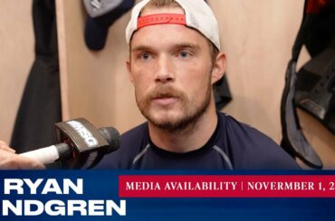 Le défenseur des Rangers de New York Ryan Lindgren répond aux questions des médias avant le match du 1er novembre…