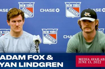 Les défenseurs des Rangers de New York Adam Fox et Ryan Lindgren ont été mis à la disposition des médias…