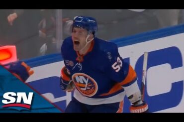 Regardez Casey Cizikas, des Islanders de New York, marquer un but unique sur une passe de revers de Ryan Pulock,…