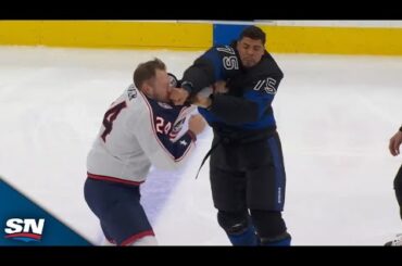 Combat sauvage entre Ryan Reaves des Maple Leafs de Toronto et Mathieu Olivier des Blue Jackets de Columbus 😳 Abonnez-vous…