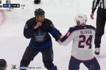Mathieu Olivier vs Ryan Reaves des Columbus Blue Jackets au Toronto Maple Leafs le 22 janvier 2025. Via https://www.hockeyfights.com