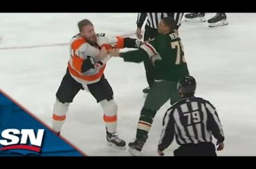 Regardez les Flyers de Philadelphie et le Wild du Minnesota s’enflammer pendant leur affrontement, alors que trois paires de combattants…