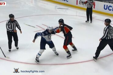 Mark Scheifele contre Ryan Strome des Jets de Winnipeg lors du match des Ducks d’Anaheim le 10 décembre 2023. via…