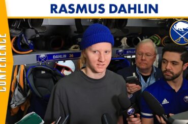 Le défenseur des Sabres de Buffalo, Rasmus Dahlin, s’est adressé aux médias à la fin de la saison 2022-23 des…