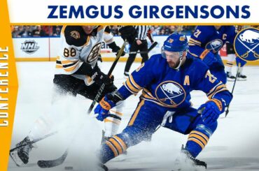 L’attaquant des Sabres de Buffalo Zemgus Girgensons s’adresse aux médias à la suite de la défaite des Sabres contre les…