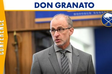 L’entraîneur-chef des Sabres de Buffalo, Don Granato, rencontre les médias après que les Sabres ont vaincu le Lightning de Tampa…