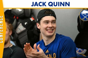 L’attaquant des Sabres de Buffalo, Jack Quinn, rencontre les médias après que les Sabres ont vaincu le Lightning de Tampa…