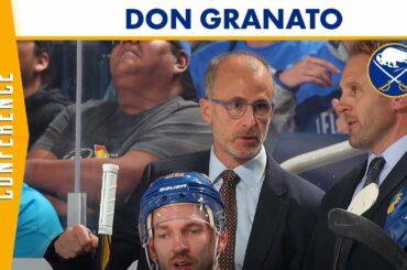 L’entraîneur-chef des Sabres, Don Granato, s’adresse aux médias après la défaite de 6-3 de l’équipe contre les Maple Leafs de…