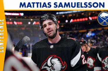 Mattias Samuelsson s’est adressé aux médias après la victoire 6-3 de l’équipe sur les Sharks de San Jose le 4…