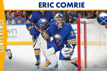 Le gardien des Sabres Eric Comrie après avoir effectué 34 arrêts dans la défaite de 3-2 contre les Canadiens de…