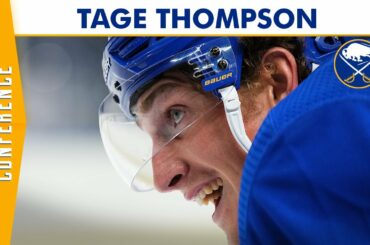 L’attaquant des Sabres de Buffalo, Tage Thompson, s’adresse aux médias le premier jour du camp d’entraînement 2022. Abonnez-vous à la…