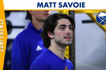 L’espoir des Sabres de Buffalo, Matt Savoie, s’est adressé aux médias au LECOM Harborcenter lors du camp de développement le…