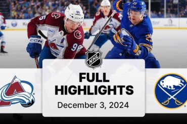Regardez les faits saillants complets du match entre l’Avalanche du Colorado et les Sabres de Buffalo le 3 décembre 2024,…