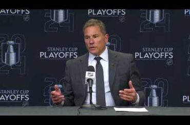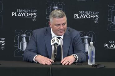 Sheldon Keefe s’entretient avec les médias après la défaite 2-1 des Leafs contre les Bruins de Boston lors du RD1…