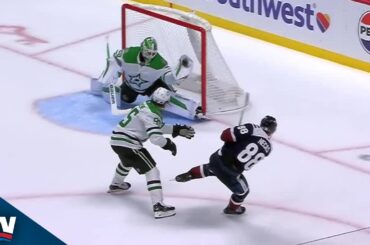 Regardez Jake Oettinger des Stars de Dallas aller d’un poste à l’autre pour effectuer un superbe arrêt sur Martin Necas…