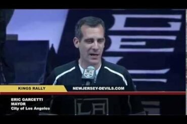 Le maire de Los Angeles, Eric Garcetti, jure au Kings Rally au Staples Center, Fox Sports West s’excuse. « C’est une…