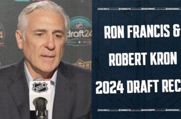 Le directeur général Ron Francis et le directeur général adjoint Robert Kron évaluent les sélections du Kraken lors du repêchage…