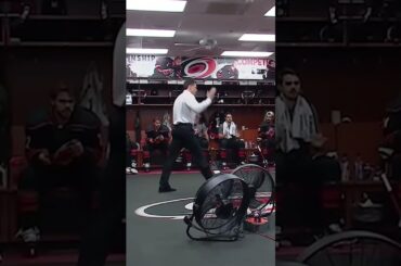 L’entraîneur-chef des Hurricanes de Caroline, Rod Brind’amour et le défenseur, Sean Walker, injectent une certaine énergie dans les vestiaires des…