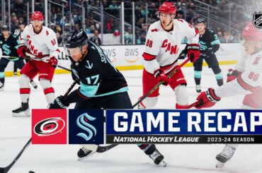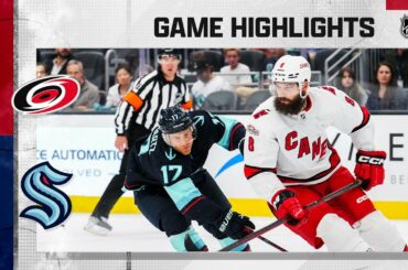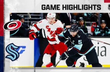 Regardez les faits saillants complets du match entre les Hurricanes de la Caroline et le Kraken de Seattle le 26…