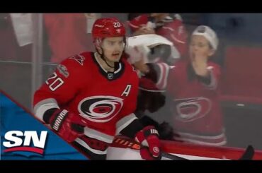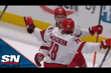 Regardez Sebastian Aho se mettre dans les livres d’histoire des Hurricanes de la Caroline, alors qu’il termine un deux contre…