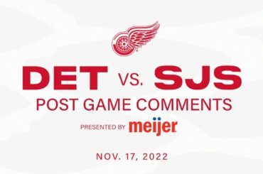 David Perron, Moritz Seider, Joe Veleno et l’entraîneur Lalonde discutent avec les médias après le match de jeudi soir contre…