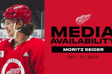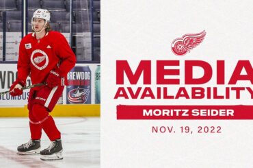 Moritz Seider s’entretient avec les médias après l’entraînement matinal des Detroit Red Wings au Nationwide Arena le samedi 19 novembre…