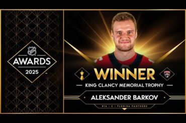 Le capitaine des Panthers de la Floride, Aleksander Barkov, reçoit à la fois le trophée King Clancy pour son leadership…