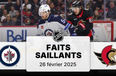 Voyez tous les faits saillants du match entre les Jets de Winnipeg et les Sénateurs d’Ottawa au Centre Canadian Tire