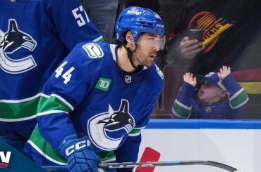 Regardez Kiefer Sherwood de Vancouver Canucks est retrouvé bas, à la fin de la troisième période d’un match 1-1 contre…